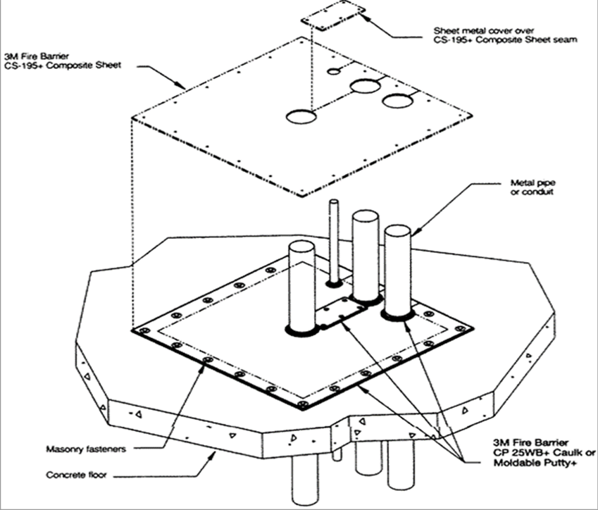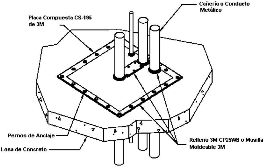 Sello en pasos de losa con instalaciones